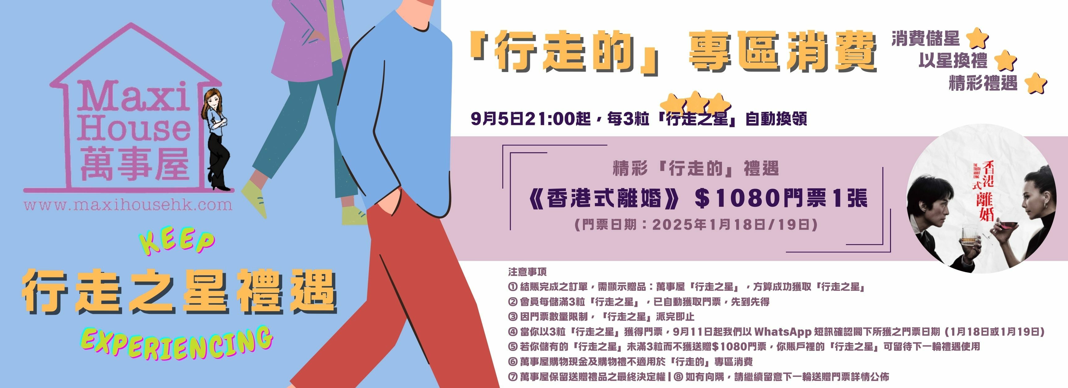 ⑤ 若你儲有的「行走之星」未滿3粒而不獲送贈$1080門票,你賬戶裡的「行走之星」可留待下一輪禮遇使用