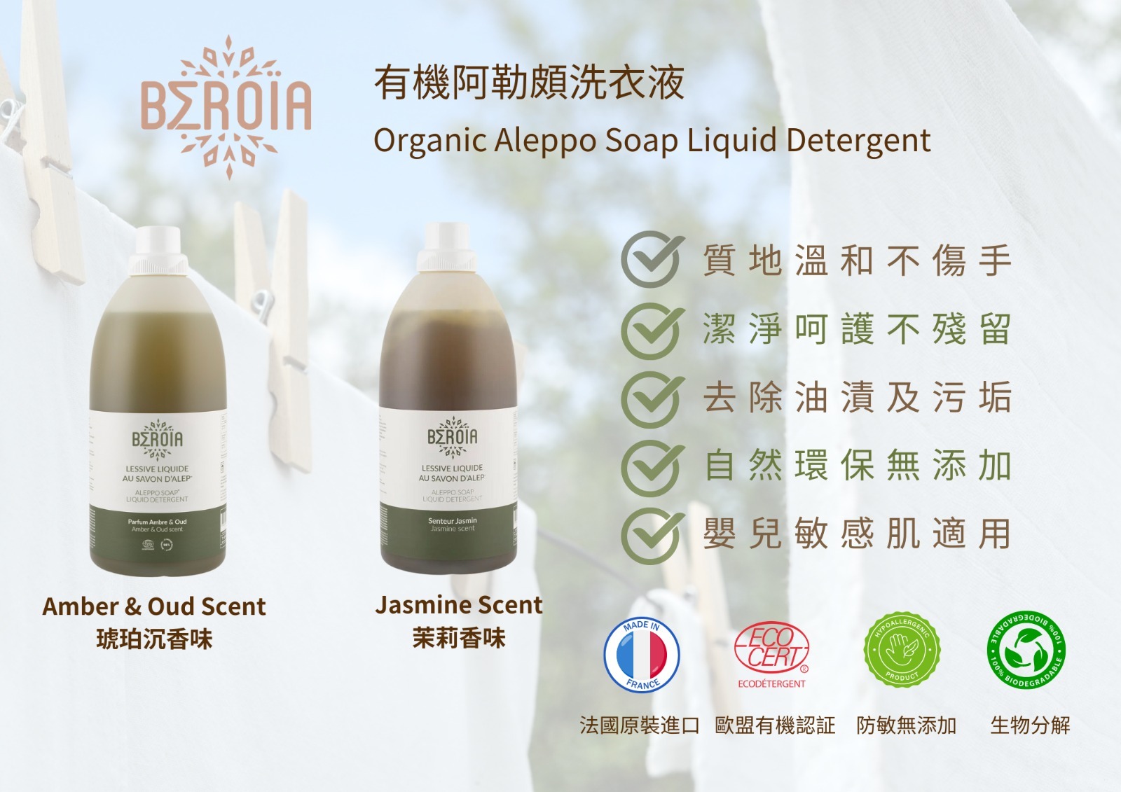 使用 BEROIA 有機阿勒頗洗衣液 琥珀沉香味,讓你沉浸在迷人的嗅覺體驗中。