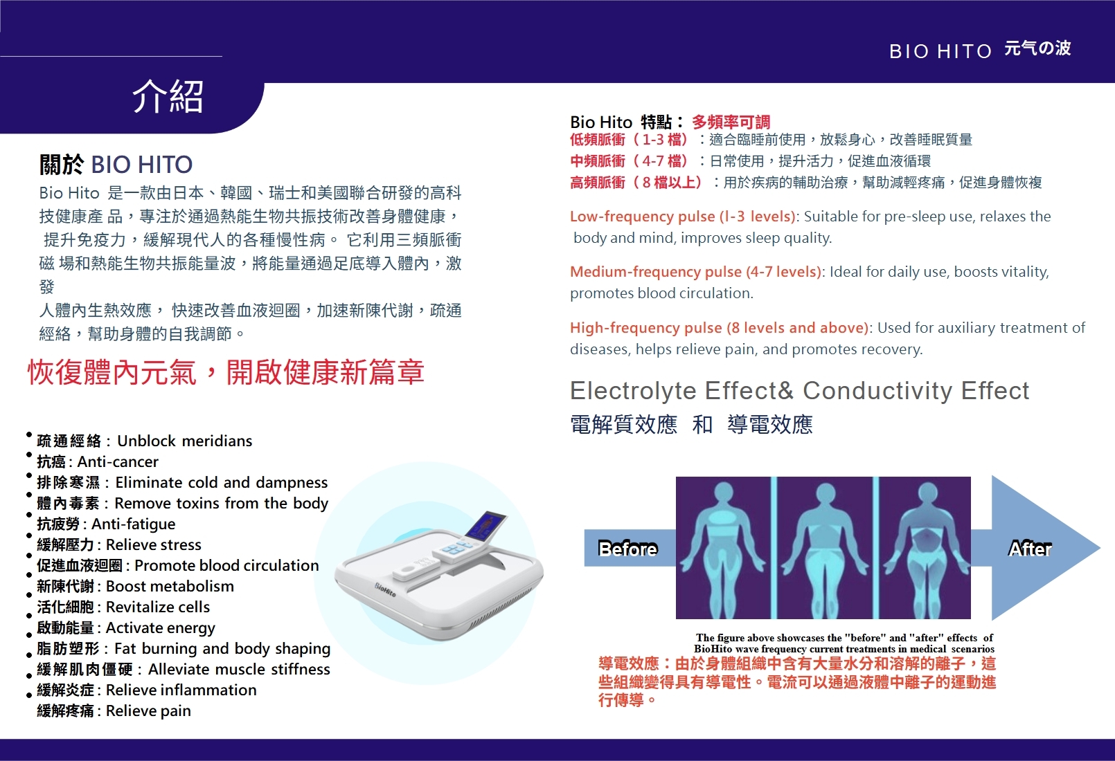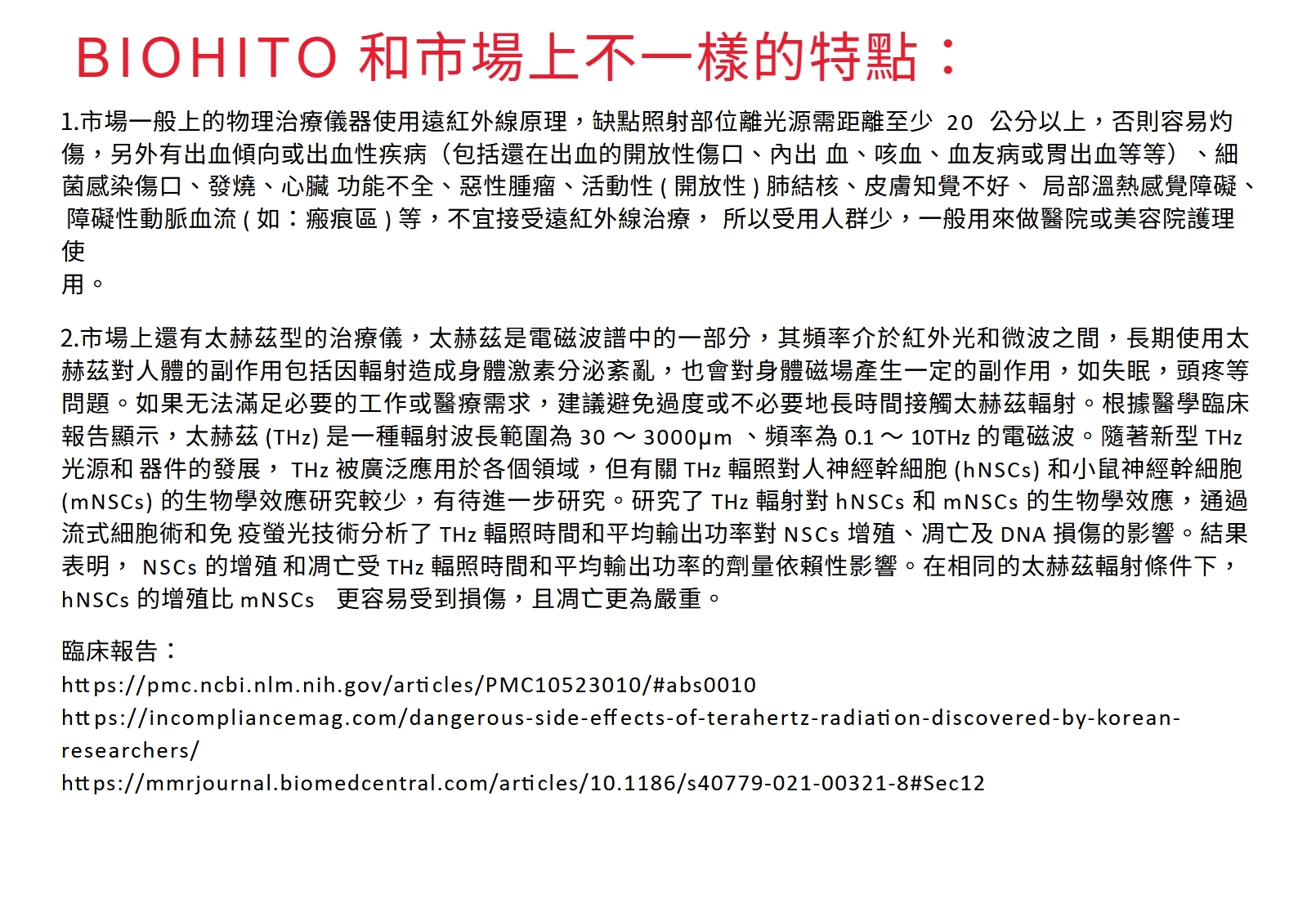 BioHito 屬綠色療法,對人體無害,無副作用,係所有理療產品中最安全嘅一種。