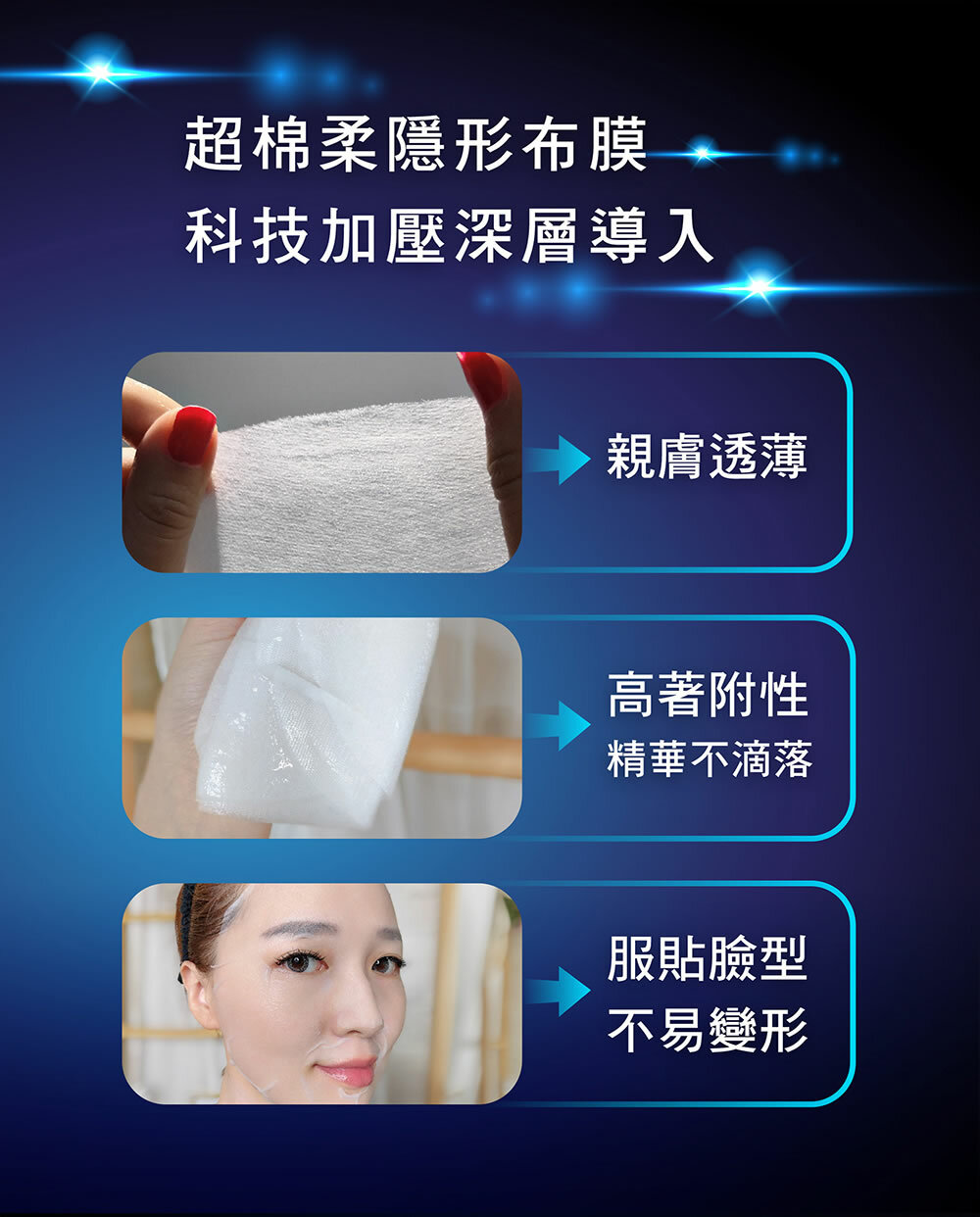 Dr.May美博士專業面膜,專利FRSAB複方精油添加,使用10分鐘幫助肌膚持續透亮水潤
