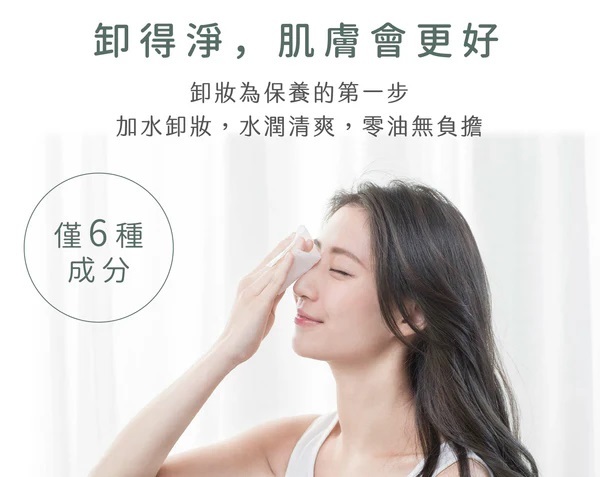 極簡6個成份,讓你卸得水潤、卸得天然、卸得安心