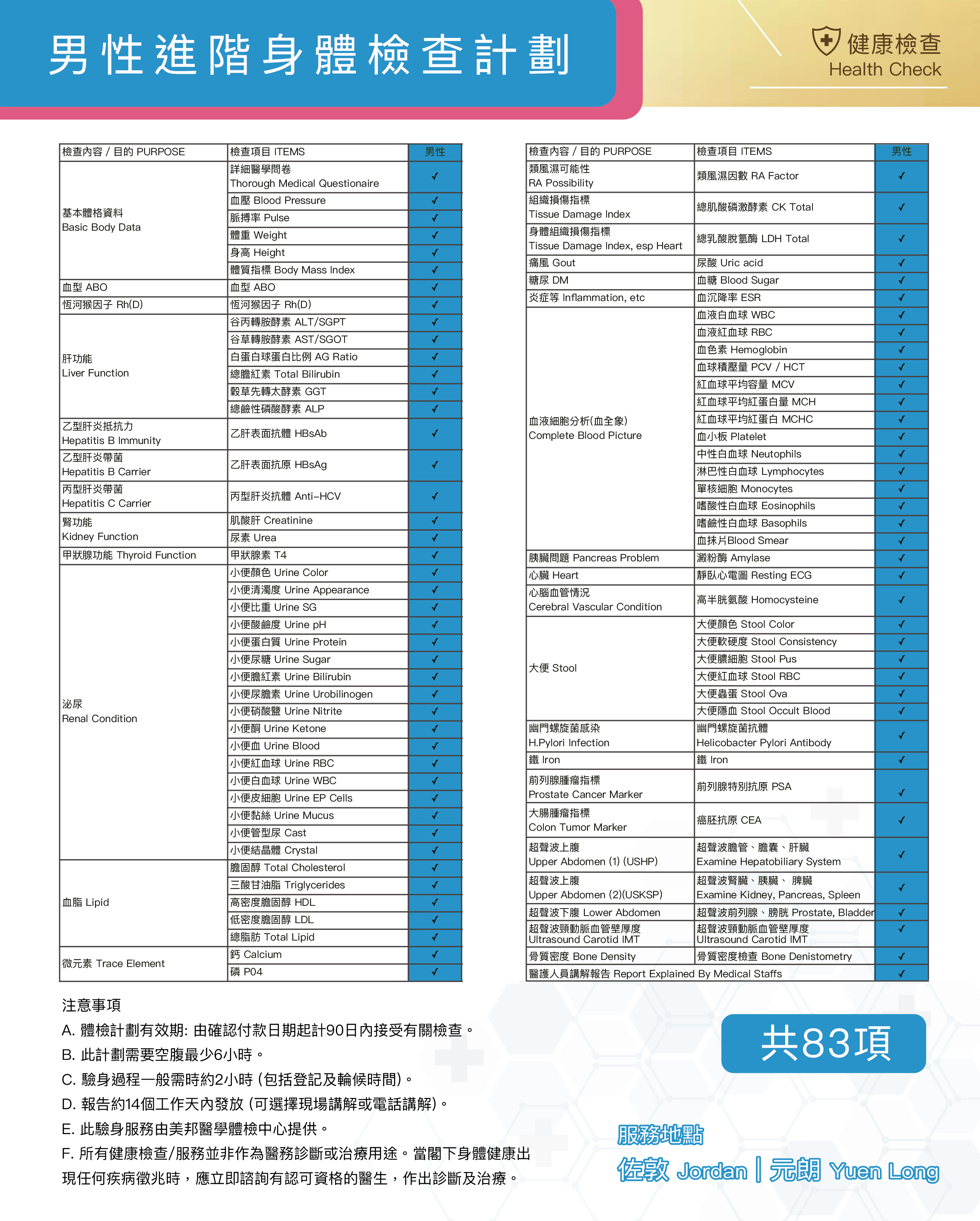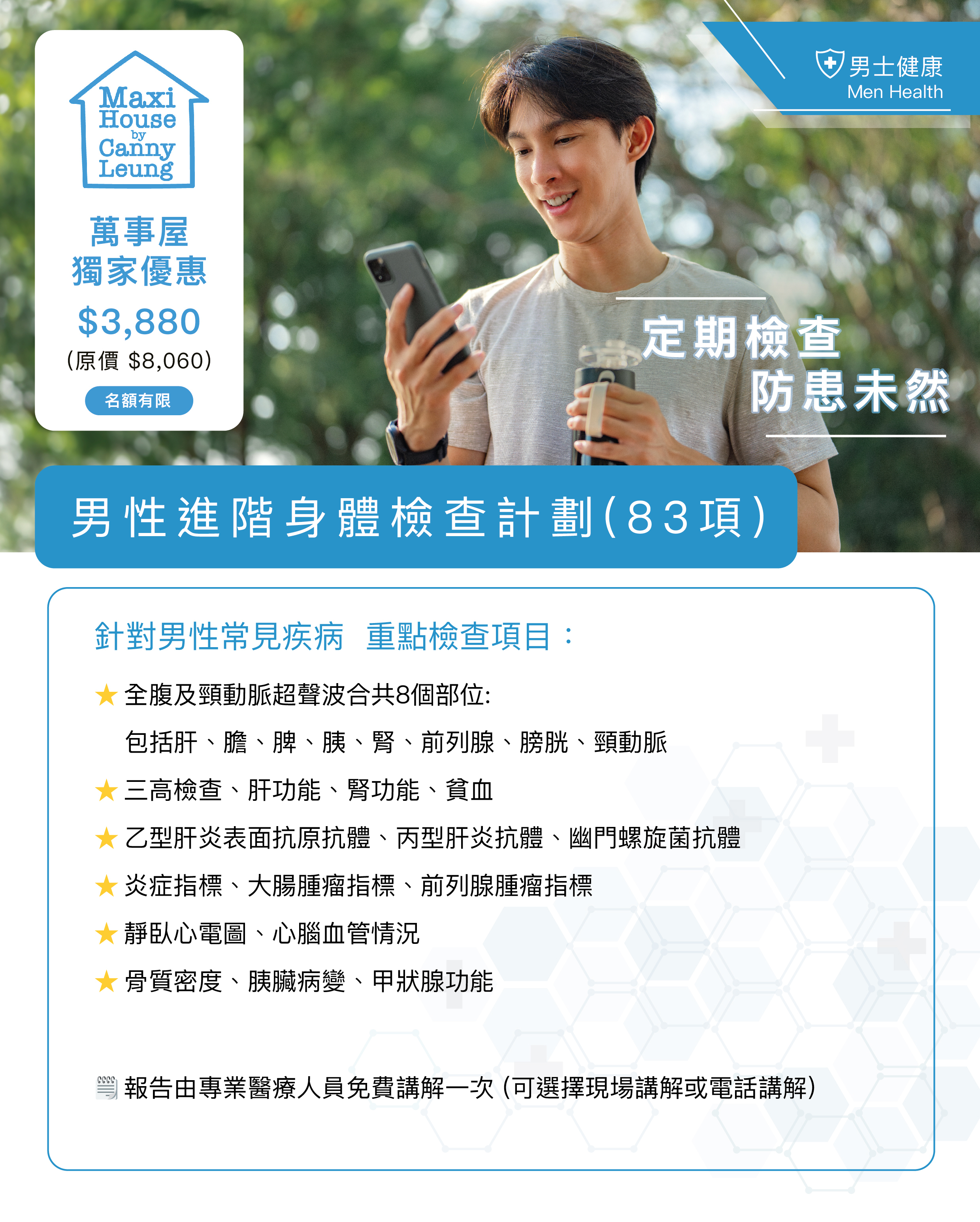 美邦醫學體檢中心 x 萬事屋—限量男士進階體檢優惠 (共83項檢測)