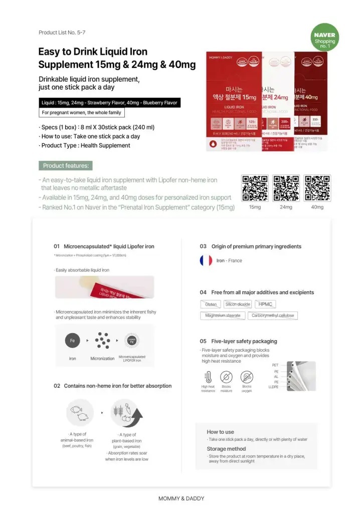 韓國 MOMMY & DADDY 成人液體鐵 24mg (8ml x 30包)