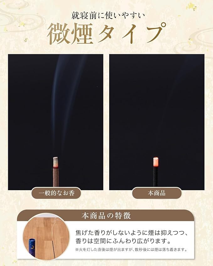 適合睡前使用的煙霧類型 | 煙霧被抑制,使香氣在空間中擴散,同時防止燒焦味的產生。即使是那些不喜歡煙霧的人也能夠接受。