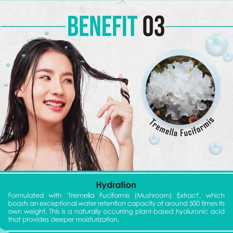 保濕滋潤: 包含「雪耳提取物」,具有卓越的保水能力(約為其自身重量的500倍),提供深層滋潤。