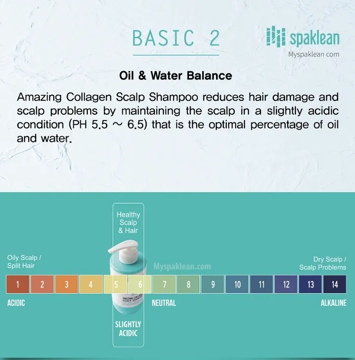 - pH 值 5.5~6.5 的弱酸性洗髮水,可實現頭皮和頭髮的最佳油水平衡