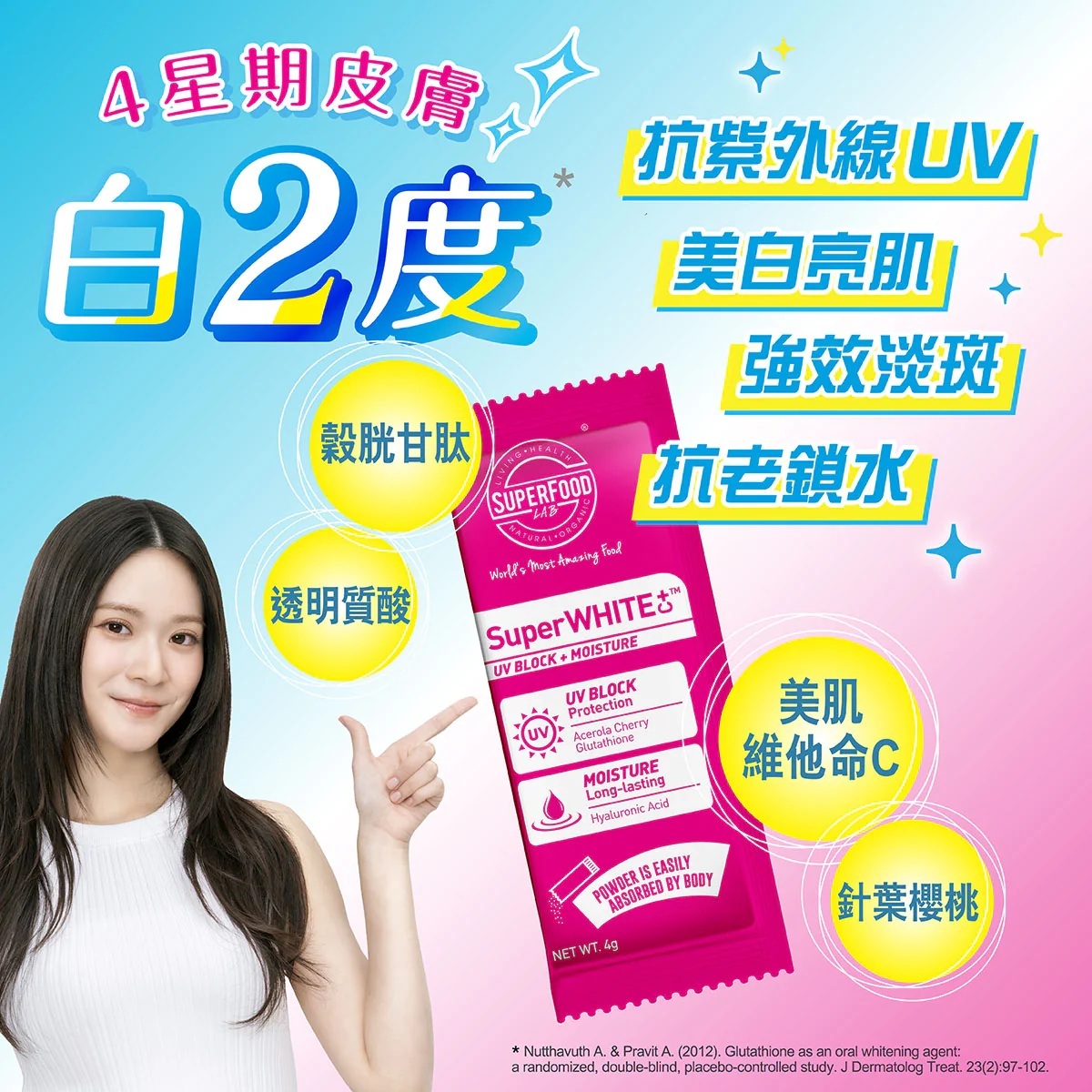 雙重亮肌力量, 可令用家4星期提升皮膚亮白2度。